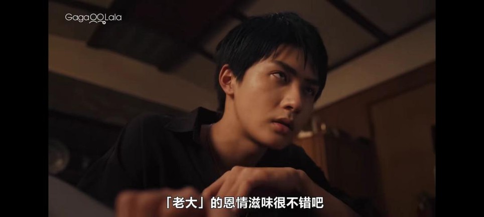 至于受的演员高桥大翔,他身材很好,长得也很标致,很多时候感觉不像在混黑道,倒像在走T台,看前几集的时候我甚至觉得他比攻还符合花美男的标准,导致我有种错觉:长着这张脸要攒钱与其去卖命不如去卖身来钱还更快,有种能把所有地点,海岛,灵堂和码头都走成秀场的能力。至于演技,很抱歉我很难去评价不存在的东西,他的表演几乎没有任何的层次感可言,所有的情绪都流于表面,微表情的控制能力基本没有,经常会有压不住嘴角的情况出现,不像小田岛,倒像小甜心,就算脸上加道疤也没有一丝狠戾的感觉,小表情特别丰富,一开始对着攻不是一脸嫌弃就是不耐烦,不像是仇人倒更像是相处多年的相看两生厌的老夫老妻,后来就是藏不住的娇羞和窃喜,完全没有一点需要被拯救的AI死感,相比之下可能子役的中村莳传都比他死感更重,更符合原著受的形象(虽然我不认为他能长成高桥大翔的样子。。。)。